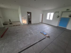Wir sind in den letzten Baumaßnahmen. Die Fliesen sind soweit fertig, nur noch Fugen ziehen und im Sanitären Bereich die Wandfliesen setzen. Die Küche ist bestellt und hat leider eine Lieferzeit von 8-10 Wochen. Die Außenanlage ist derzeit in Planung. Wir wollen eine Terrasse pflastern und dabei die Optik mit der MZH vereinen. Dazu finden Abstimmungen mit der Stadt und den entsprechenden Firmen statt. Letztendlich geht es auch um den verantwortungsvollen Umgang mit Vereinsmitteln.